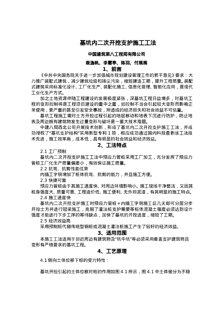 QHGF-2022055 基坑内二次开挖支护施工工法.doc