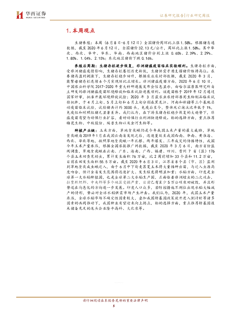 华西证券:农林牧渔行业周报第24期:生猪存栏稳步恢复,非瘟疫苗临床实验顺利.pdf