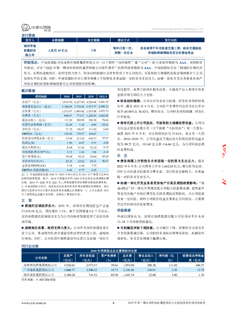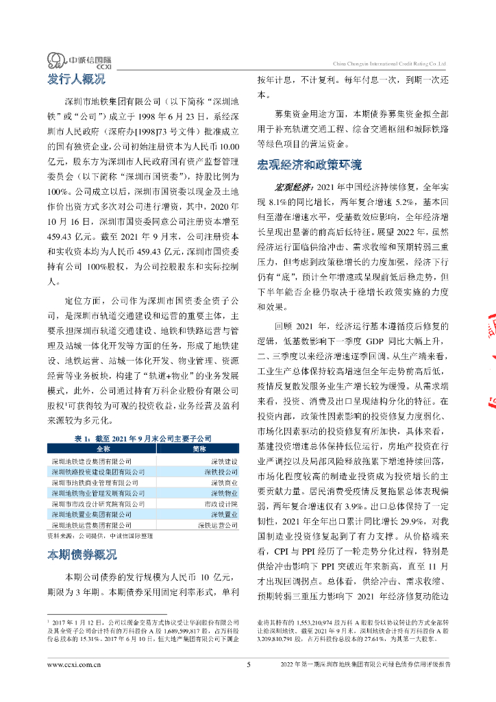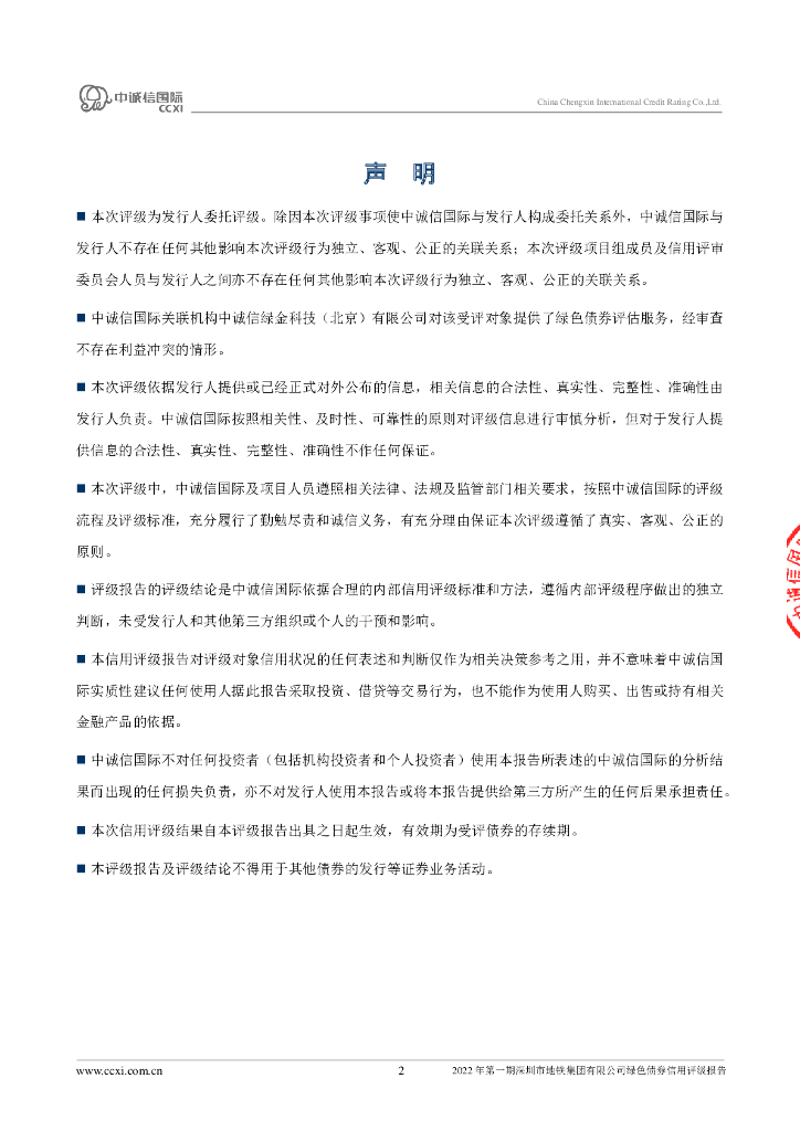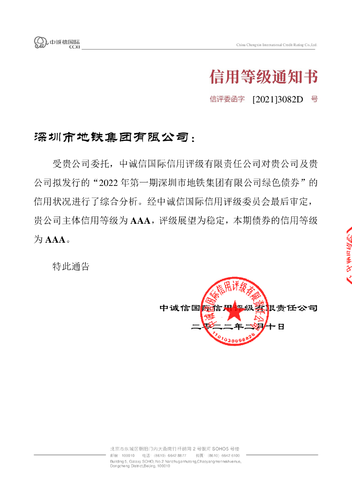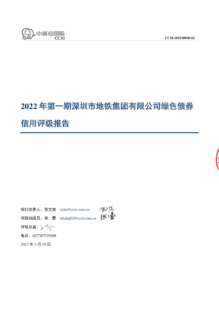 中诚信:2022年第一期深圳市地铁集团有限公司绿色债券信用评级报告.pdf