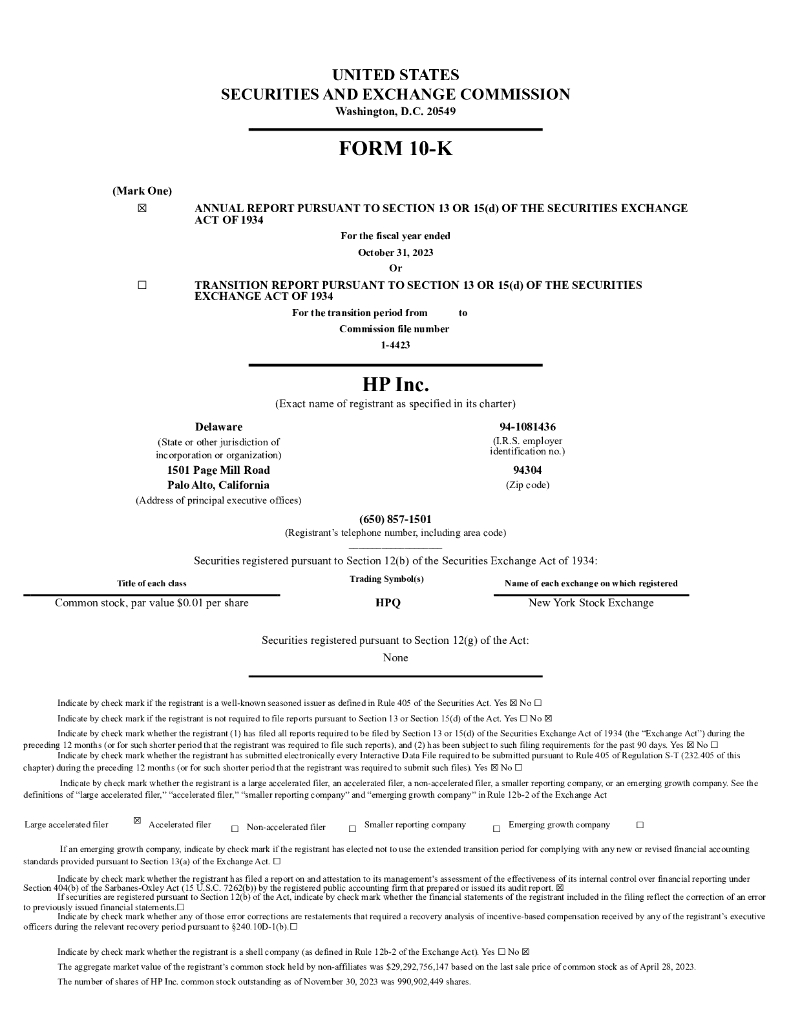 Hewlett-Packard Company(HPQ)2023财年年度报告(英文版).pdf