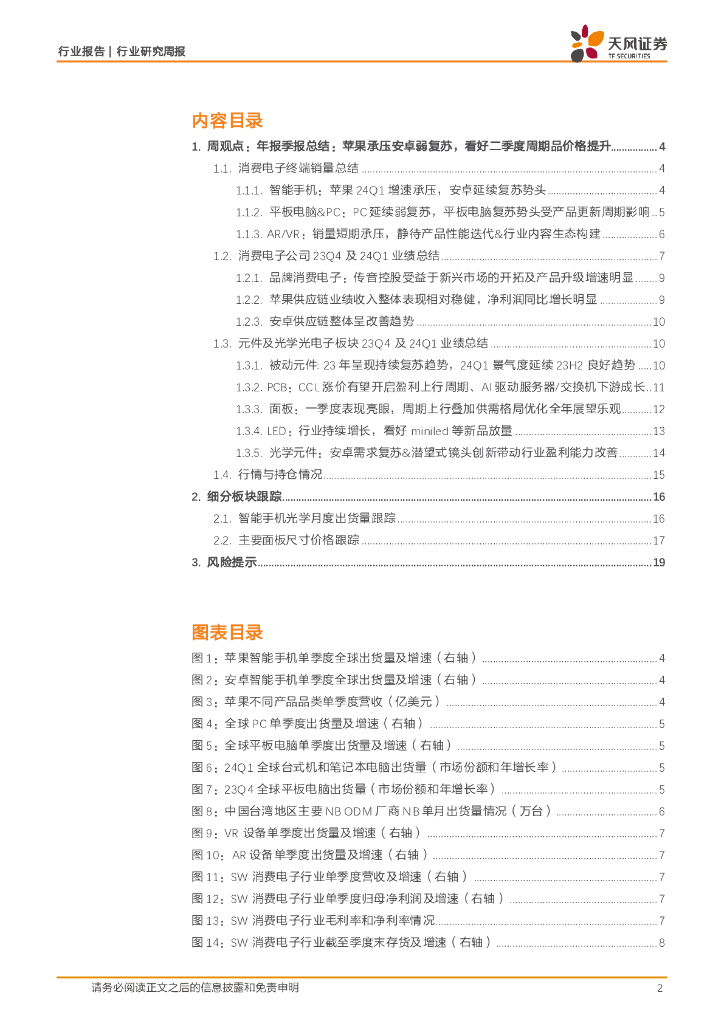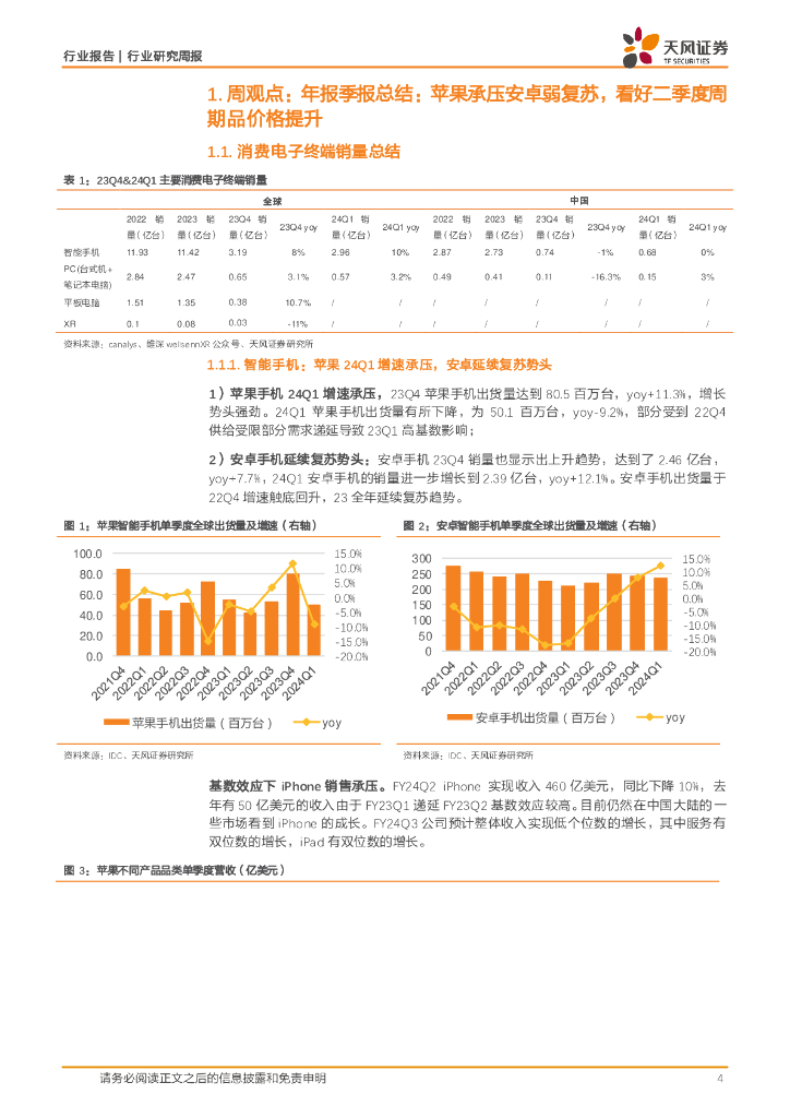 天风证券:消费电子年报季报总结:苹果承压安卓弱复苏,看好二季度周期品价格提升.pdf