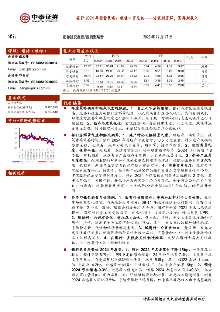 中泰证券:银行2024年投资策略:稳健中有生机——宏观到客群,客群到收入.pdf