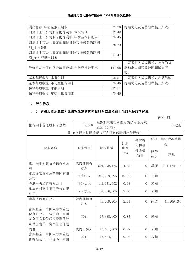 603766-隆鑫通用:隆鑫通用动力股份有限公司2025年第三季度报告.pdf