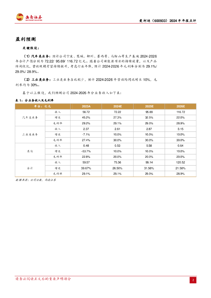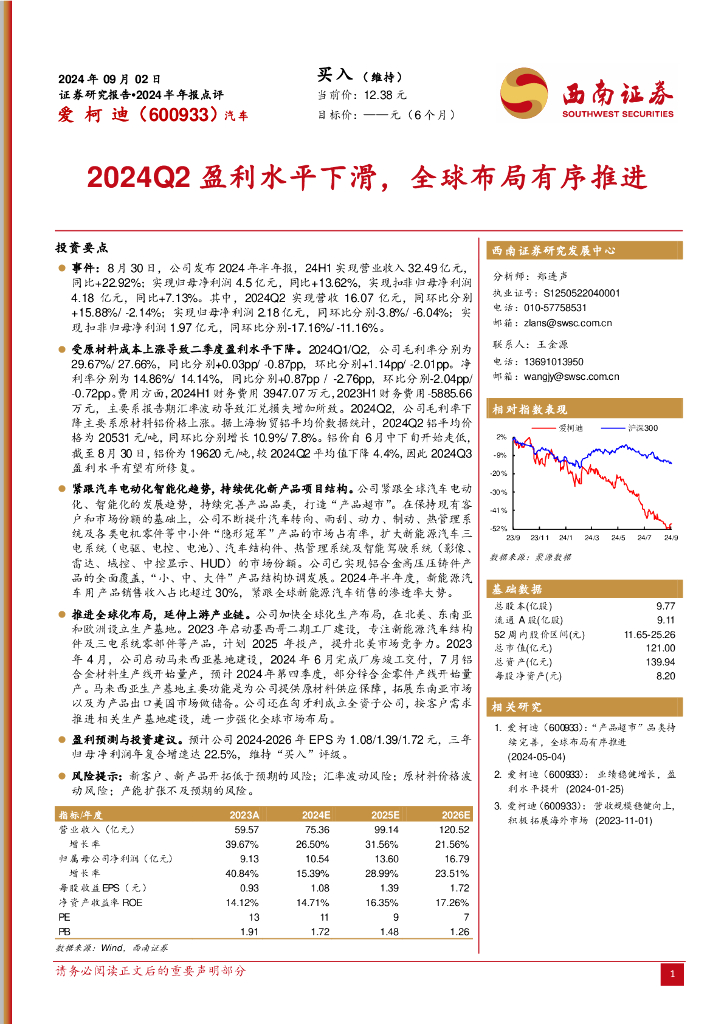 西南证券:爱柯迪(600933)-2024半年报点评:2024Q2盈利水平下滑,全球布局有序推进.pdf