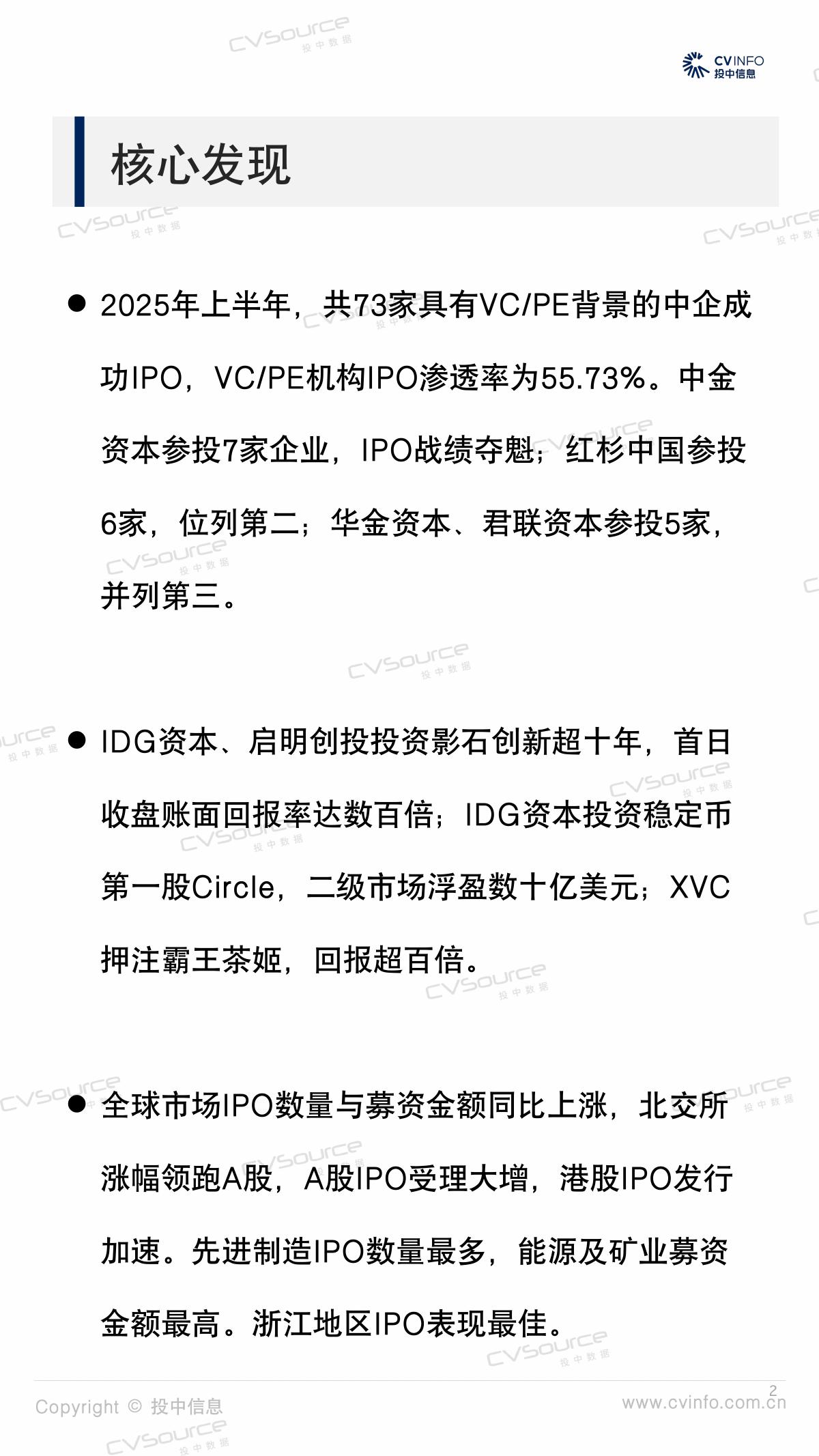 投中信息:投中统计:2025年H1 IPO数量同比上涨35% 机构长期陪伴百倍回报.pdf
