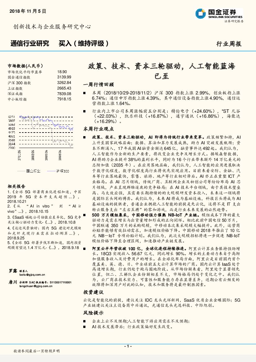 国金证券:通信行业周报:政策、技术、资本三轮驱动,人工智能蓝海已至.pdf