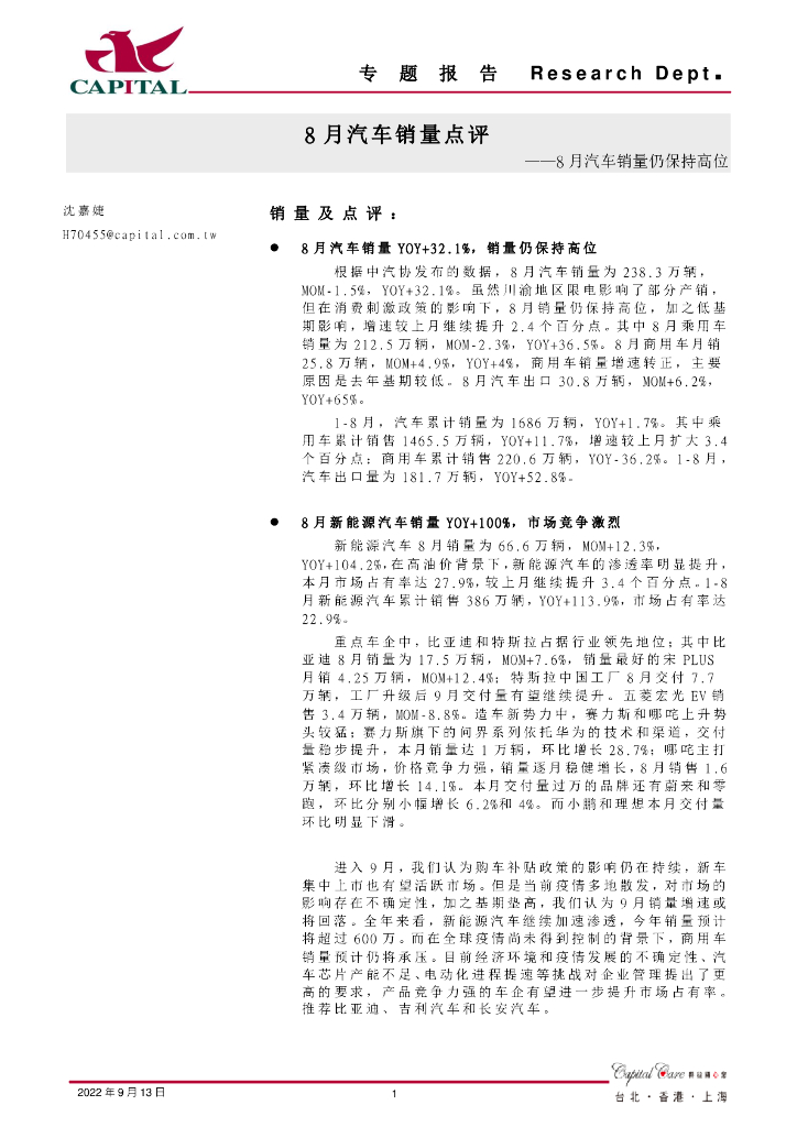 群益证券:8月汽车销量点评:8月汽车销量仍保持高位.pdf