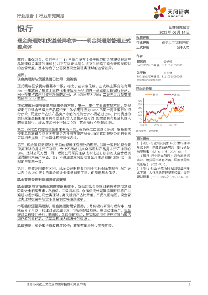 天风证券:银行:现金类理财管理正式稿点评-现金类理财和货基差异收窄.pdf