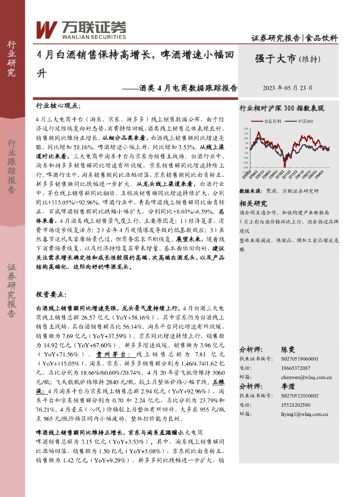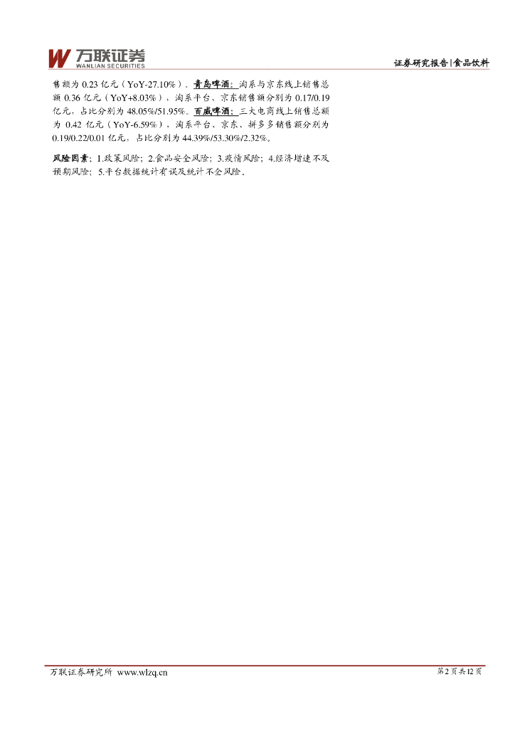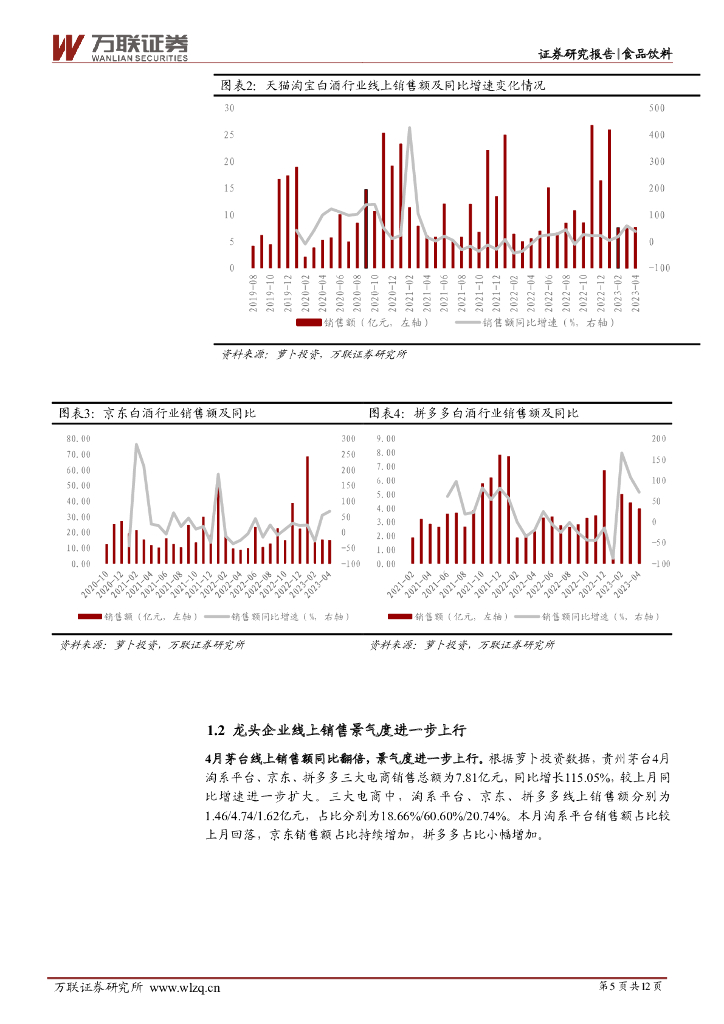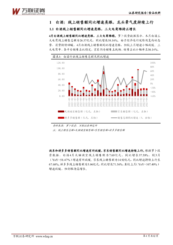 万联证券:食品饮料行业酒类4月电商数据跟踪报告:4月白酒销售保持高增长,啤酒增速小幅回升.pdf
