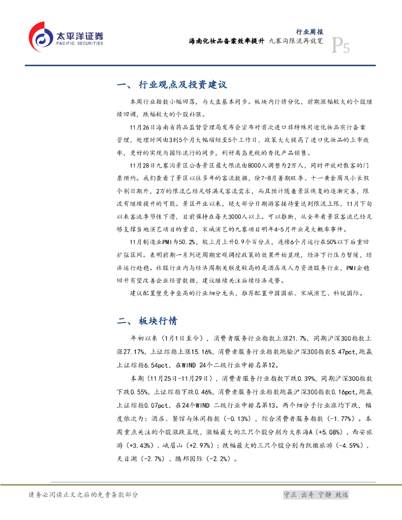 太平洋证券:消费行业周报:海南化妆品备案效率提升 九寨沟限流再放宽.pdf