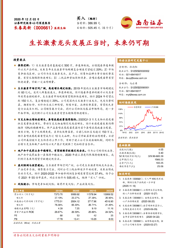 西南证券:长春高新(000661)-生长激素龙头发展正当时,未来仍可期.pdf