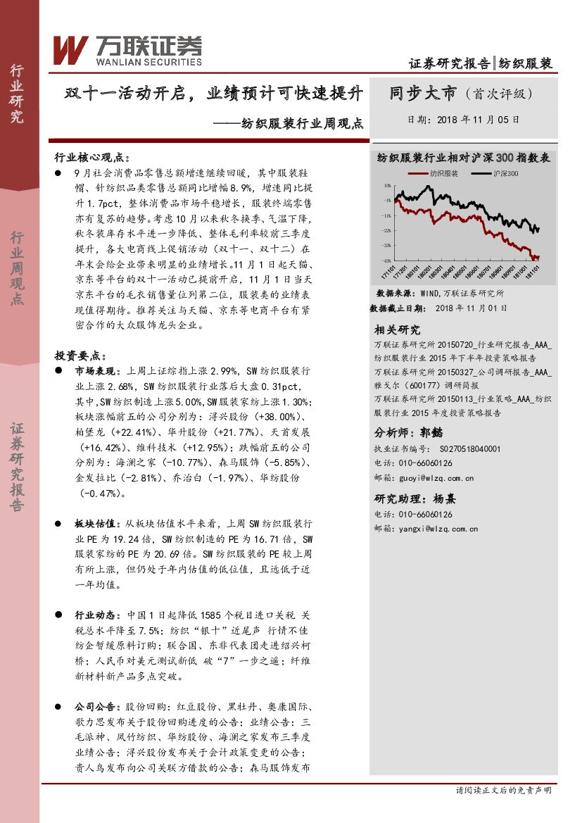 万联证券:纺织服装行业周观点:双十一活动开启,业绩预计可快速提升.pdf