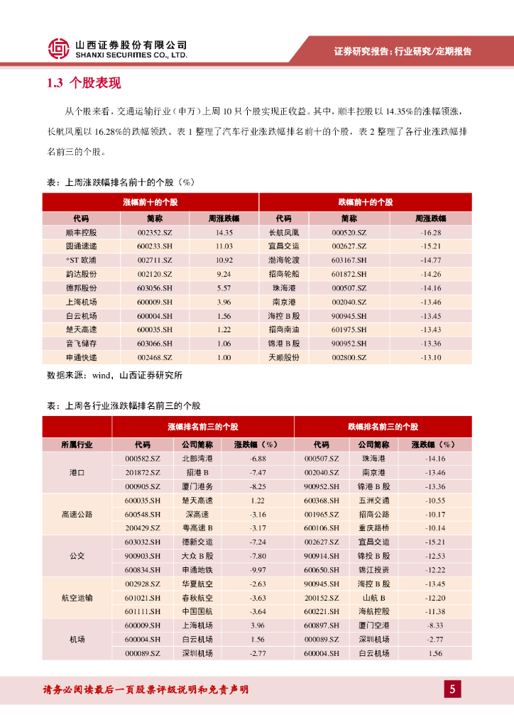 山西证券:交通运输行业周报:疫情影响运量下滑,快递需求有望增加.pdf
