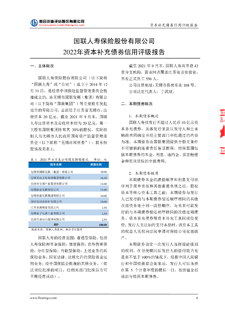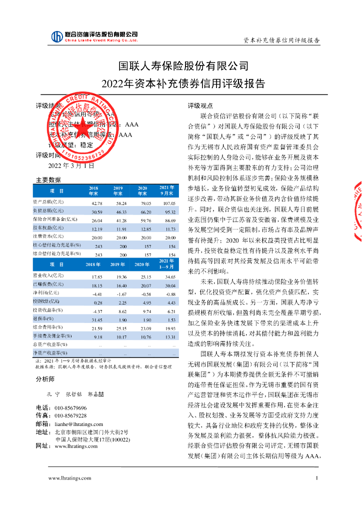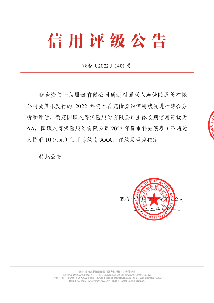 联合资信:国联人寿保险股份有限公司2022年资本补充债券信用评级报告(联合资信评估股份有限公司).pdf