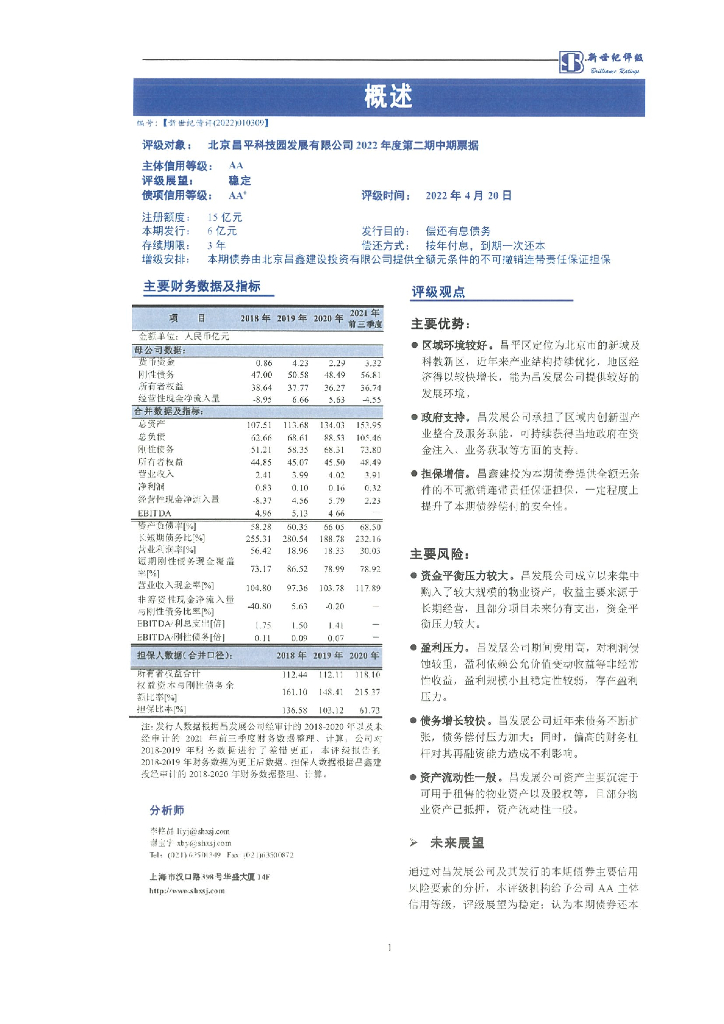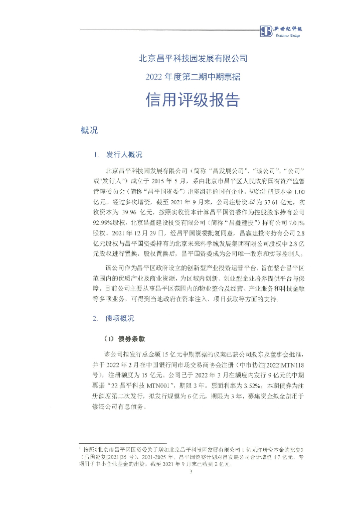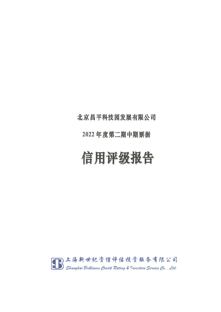 新世纪:北京昌平科技园发展有限公司2022年度第二期中期票据信用评级报告.pdf