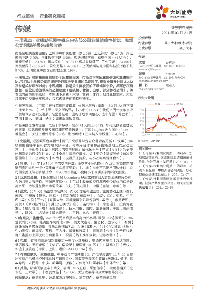 天风证券:传媒一周观点:业绩期把握中概在内头部公司业绩估值性价比,底部公司预期差带来超额收益.pdf