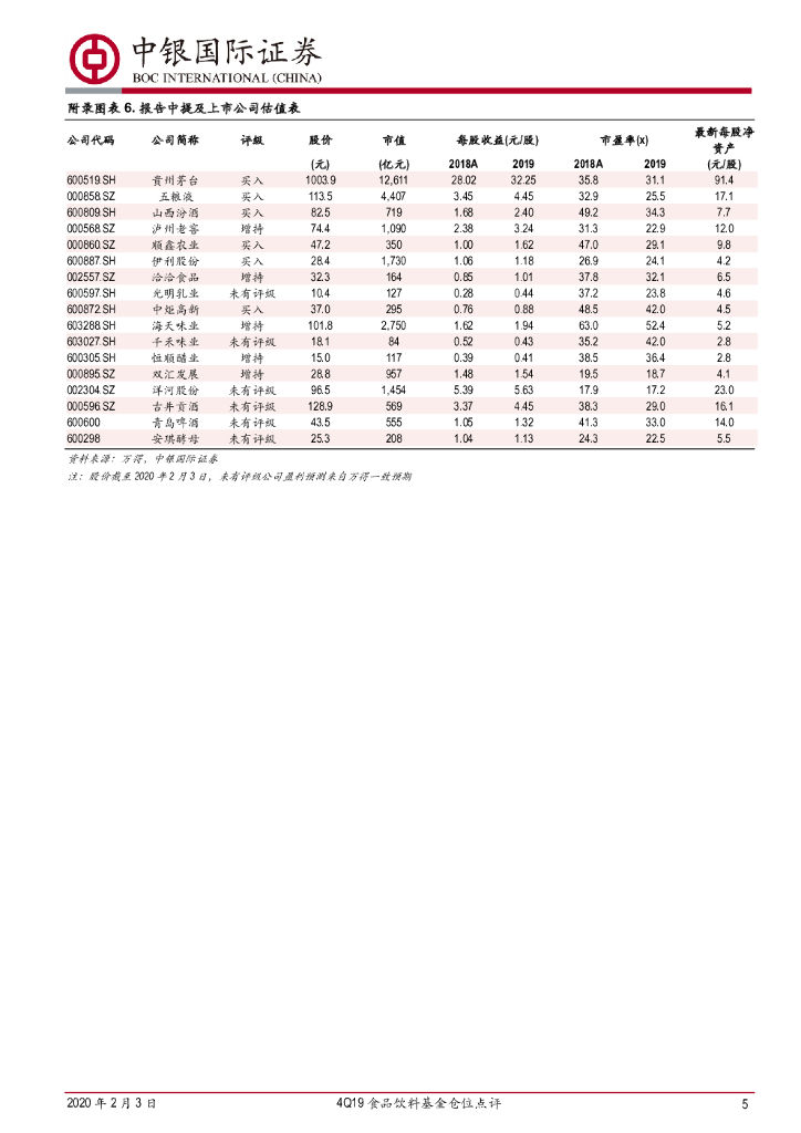 中银证券:4Q19食品饮料基金仓位点评:白酒仓位环比回落.pdf