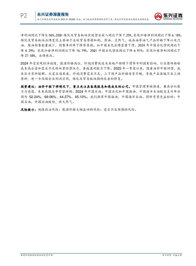 东兴证券:油气和炼化及贸易板块2024和2025Q1综述:油气板块仍将保持较高景气度,炼化及贸易板块业绩承压期待改善.pdf