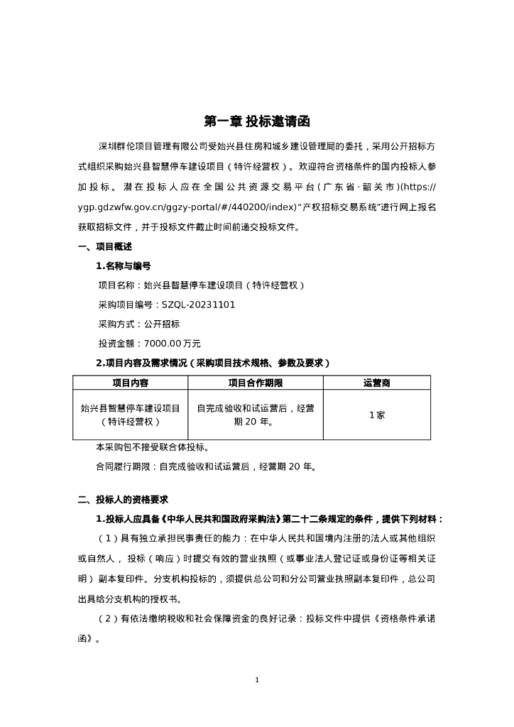 招标文件--始兴县智慧停车建设项目(特许经营权)招标文件.doc