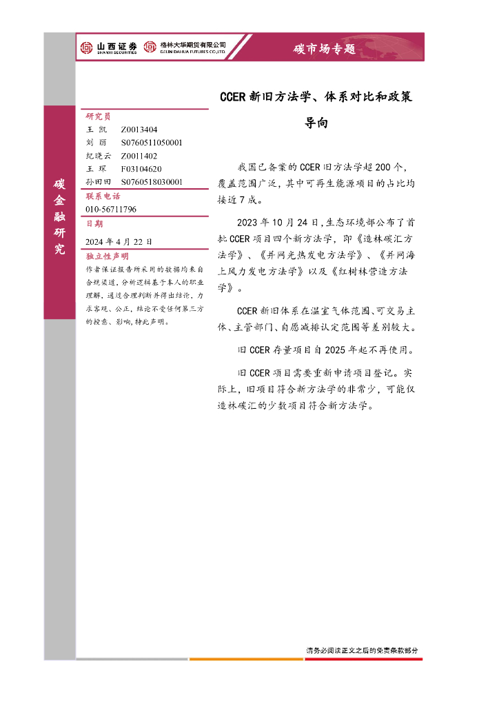 山西证券:碳市场专题:CCER新旧方法学、体系对比和政策导向.pdf
