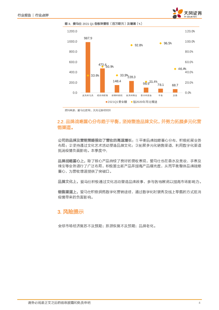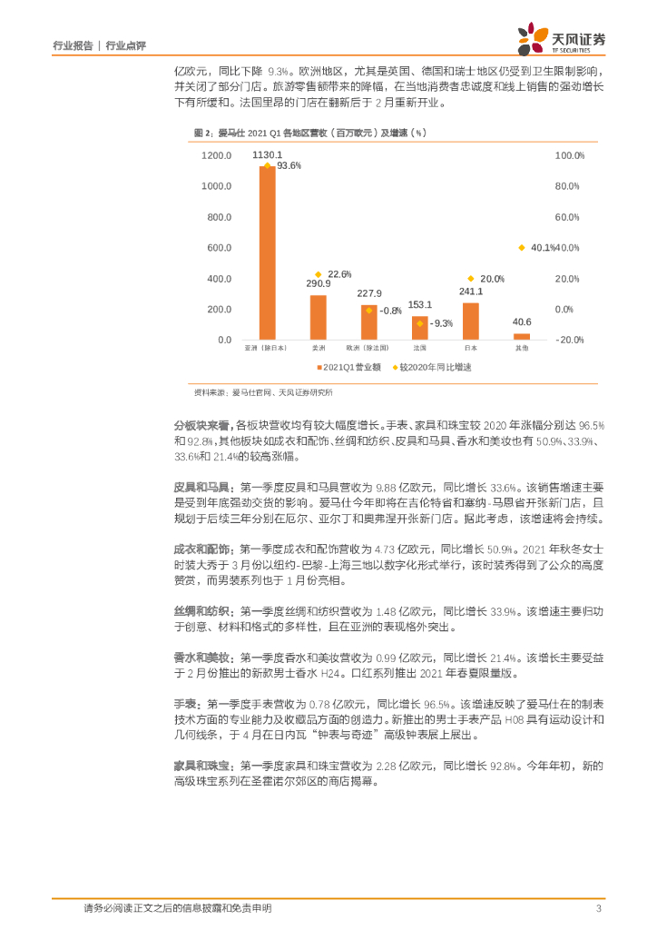 天风证券:商业贸易:爱马仕|亚洲市场助力强劲增速,2021Q1整体营收同比增长43.7%.pdf
