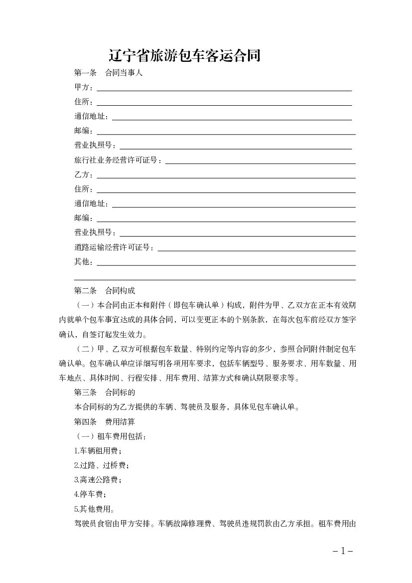 LF-2015-0401 辽宁省旅游包车客运合同(示范文本).pdf