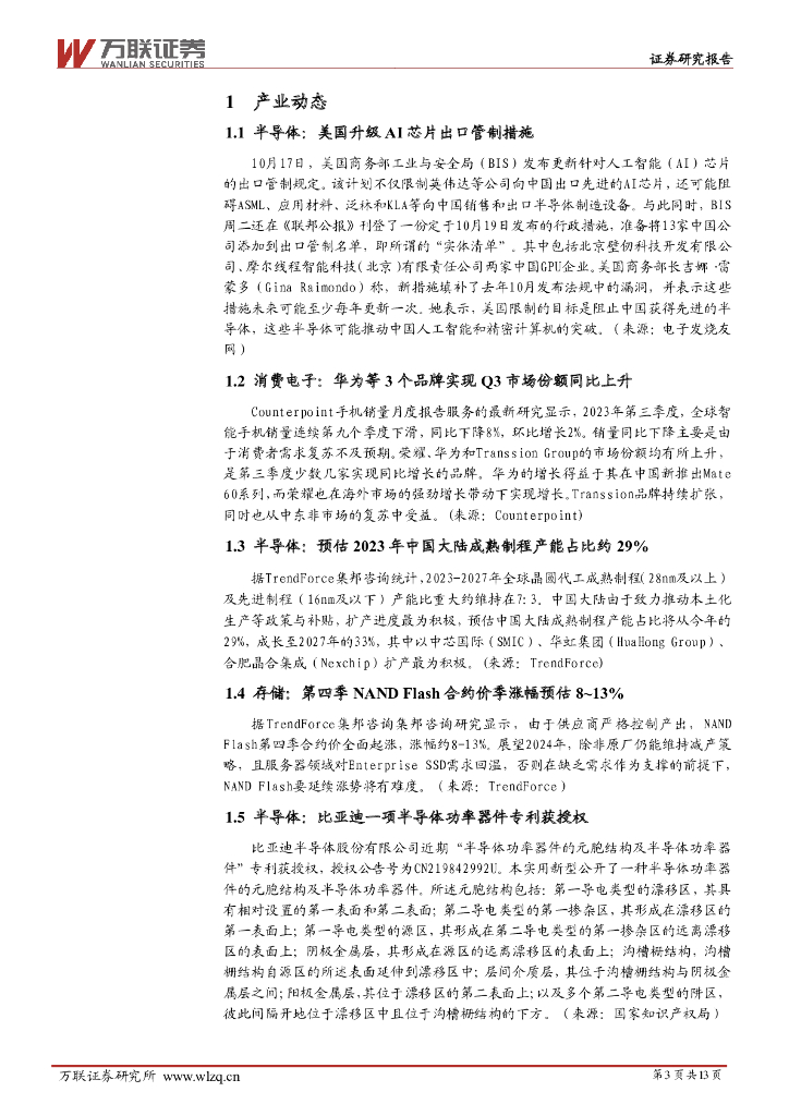 万联证券:电子行业周观点:AI芯片出口管制措施再升级,算力芯片国产替代势在必行.pdf