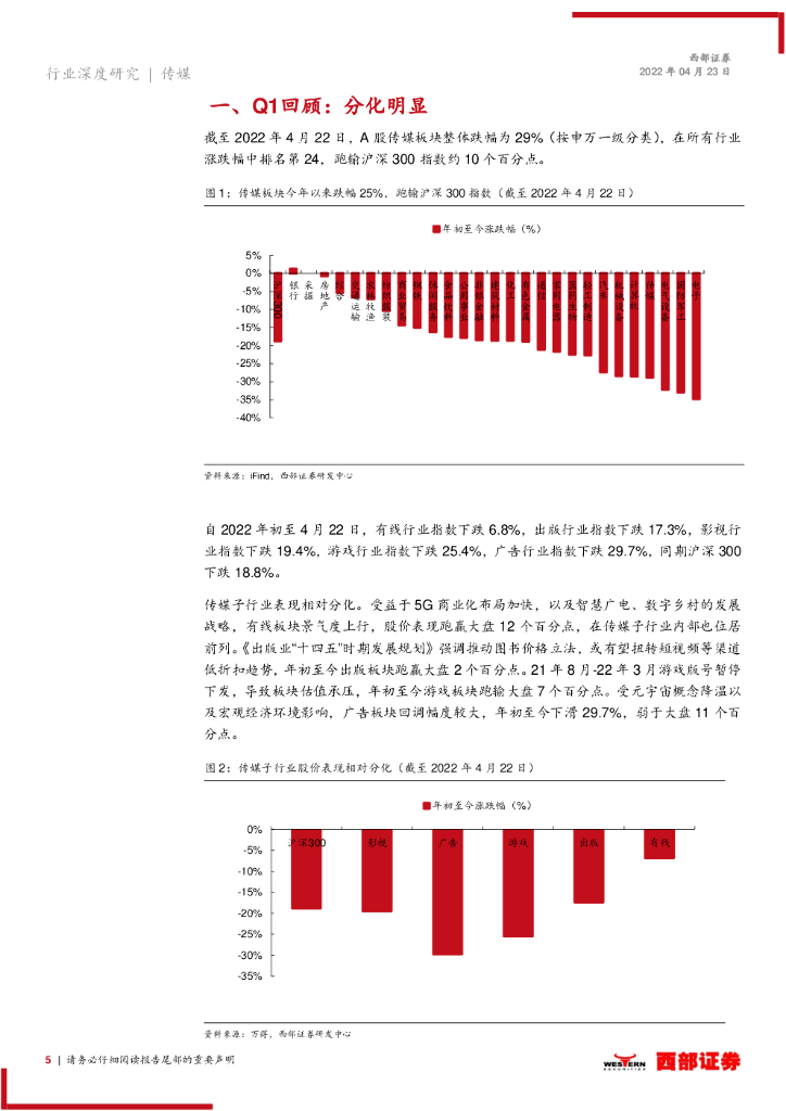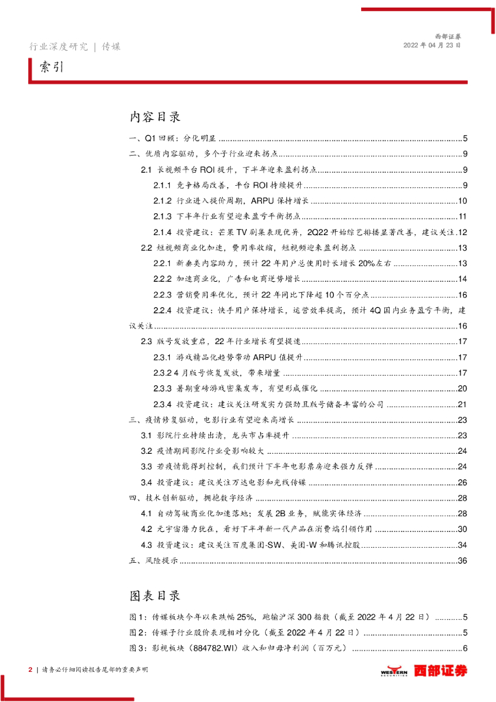 西部证券:传媒行业2022年中期策略报告:多个子行业迎来拐点,关注疫情修复以及技术创新.pdf