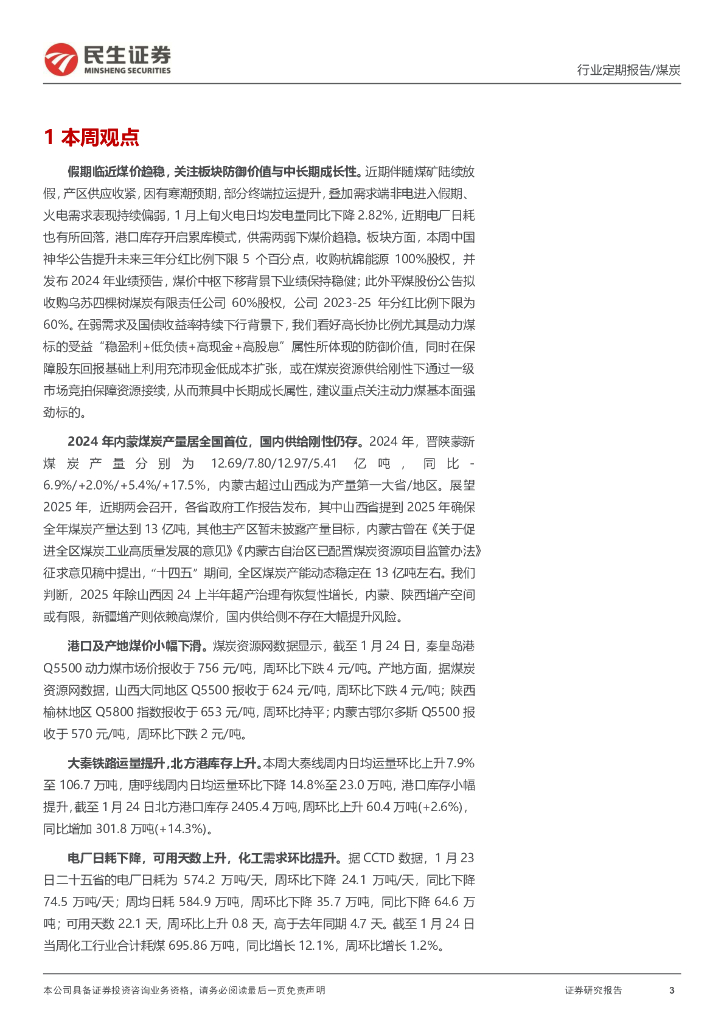 民生证券:煤炭周报:假期临近煤价趋稳,关注板块防御价值与中长期成长性.pdf