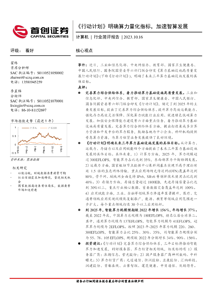 首创证券:计算机行业简评报告:《行动计划》明确算力量化指标,加速智算发展.pdf