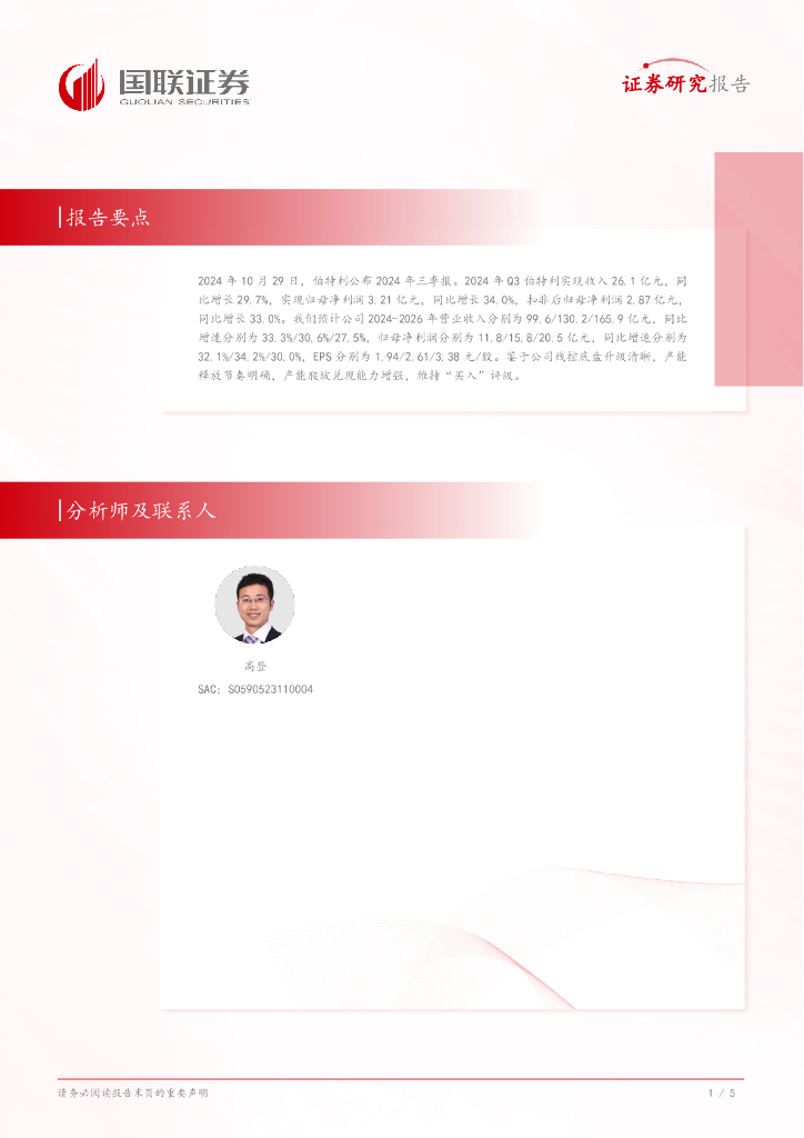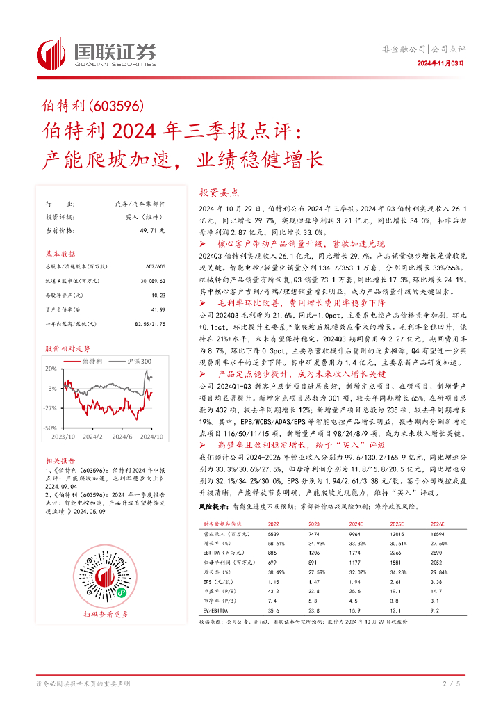 国联证券:伯特利2024年三季报点评:产能爬坡加速,业绩稳健增长.pdf