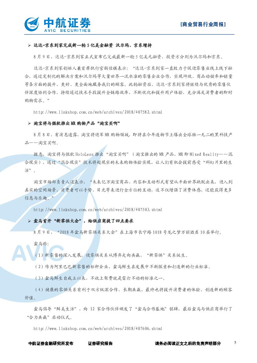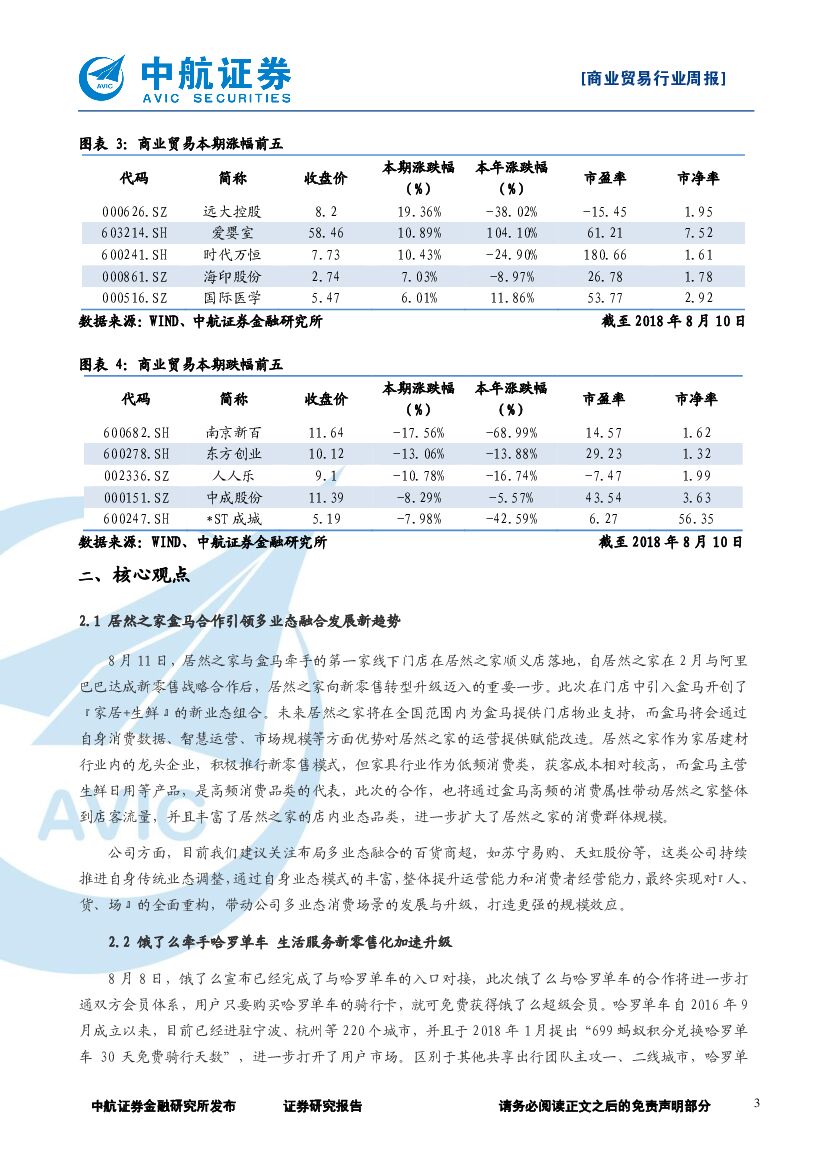 中航证券:商业贸易行业周报:居然之家盒马引领多业态融合发展新趋势,生活服务新零售化加速升级.pdf