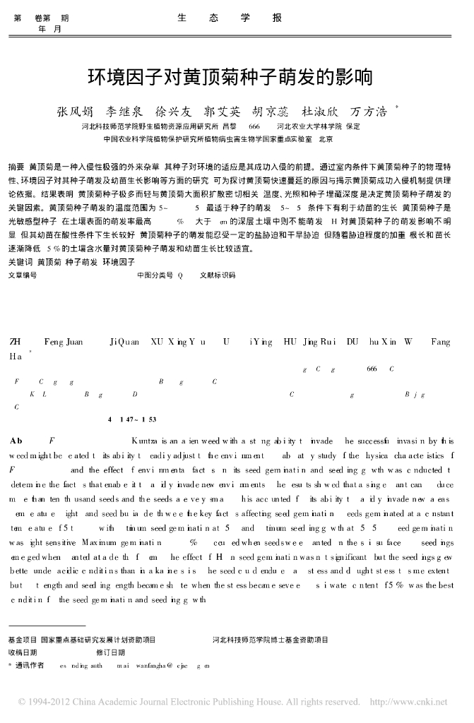 《园林植物栽培技术》环境因子对黄顶菊种子萌发的影响.pdf