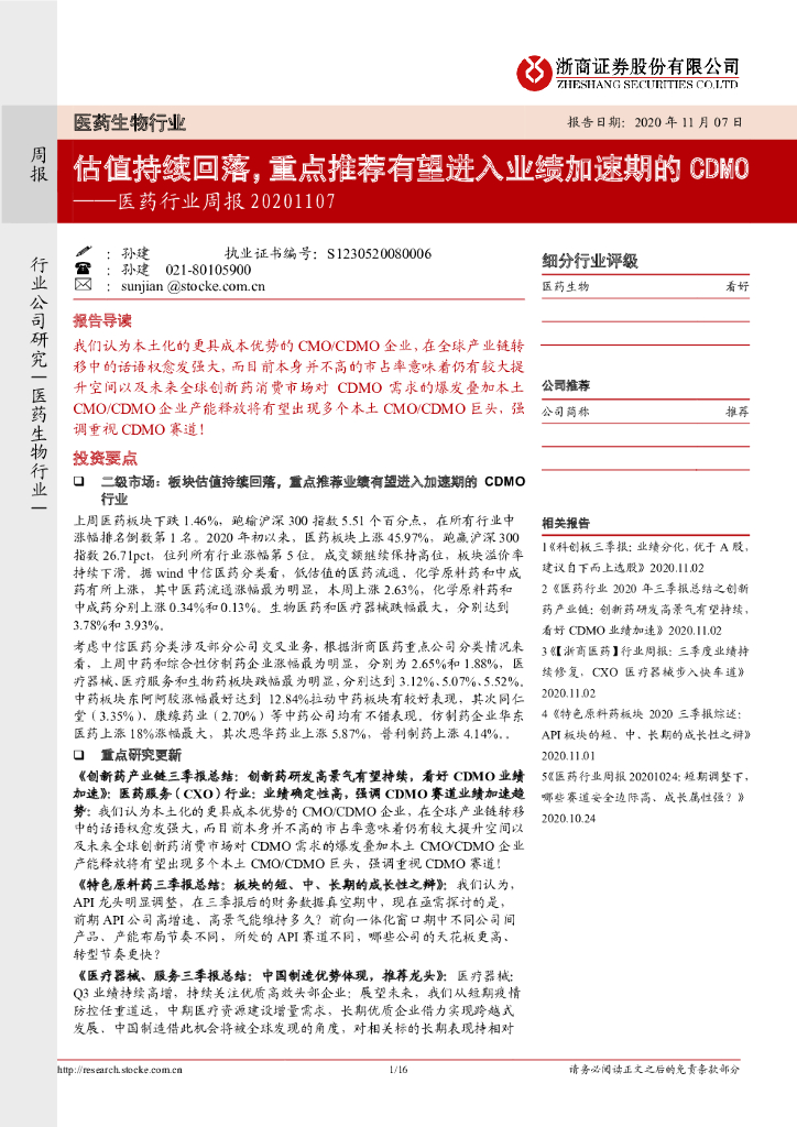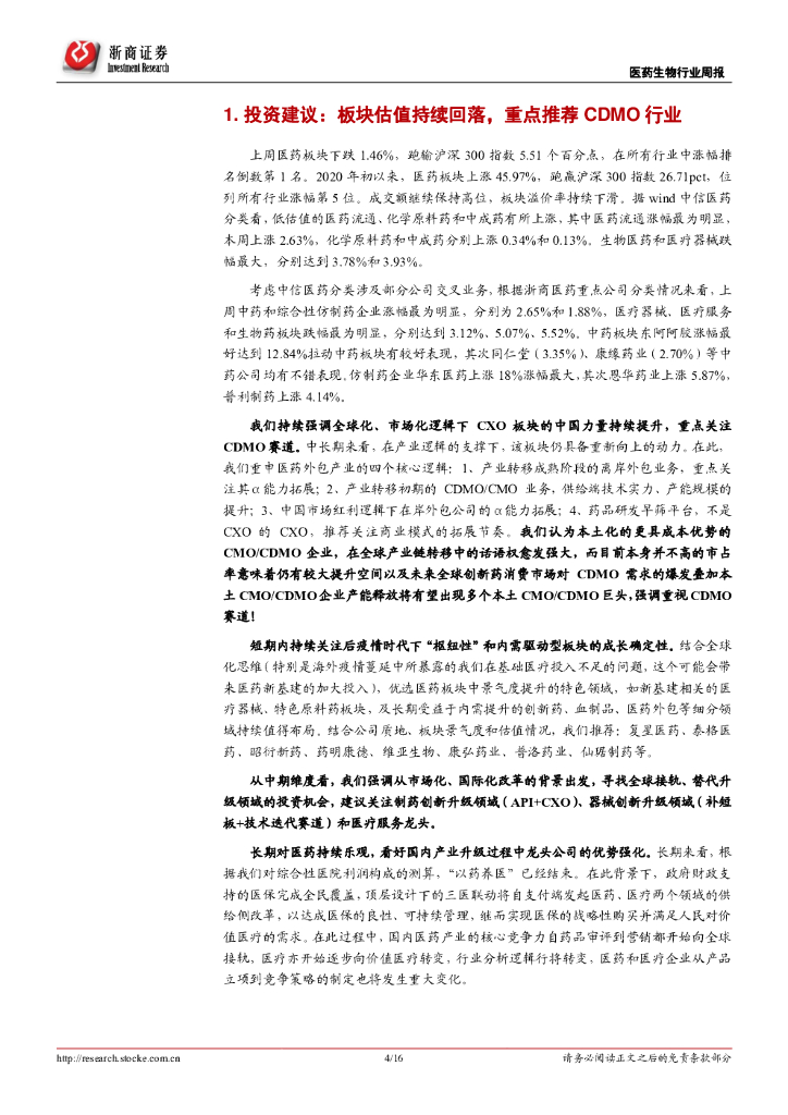 浙商证券:医药行业周报:估值持续回落,重点推荐有望进入业绩加速期的CDMO.pdf