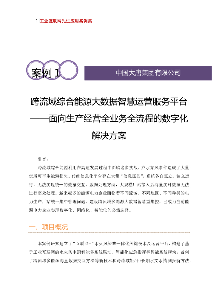 工业互联网产业联盟:跨流域综合能源大数据智慧运营服务平台——面向生产经营全业务全流程的数字化解决方案.pdf