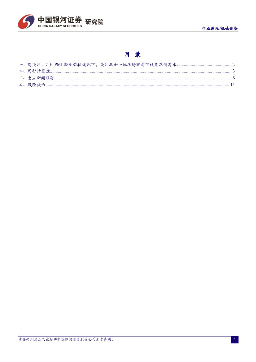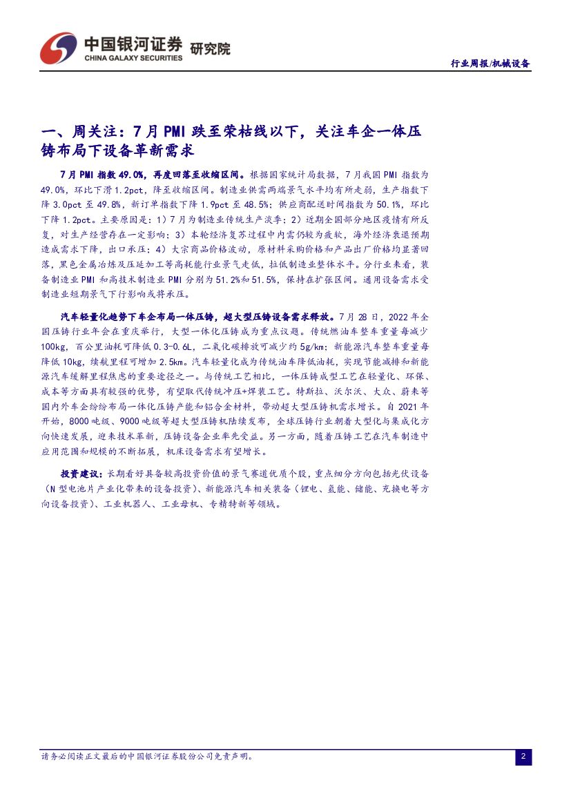 中国银河:机械设备行业周报:7月PMI跌至荣枯线以下,关注车企一体压铸布局下设备革新需求.pdf