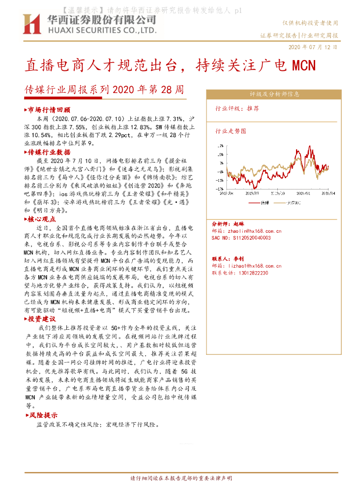 华西证券:传媒行业周报系列2020年第28周:直播电商人才规范出台,持续关注广电MCN.pdf