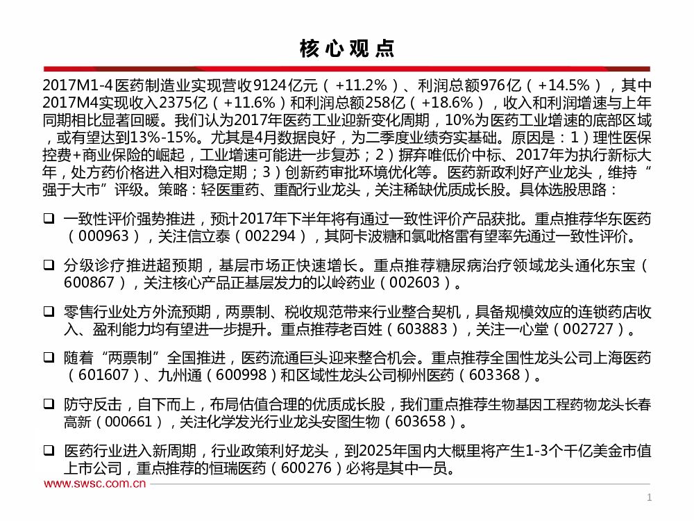 西南证券:2017年中期医药投资策略:坚守医药行业龙头,喜迎估值切换行情.pdf
