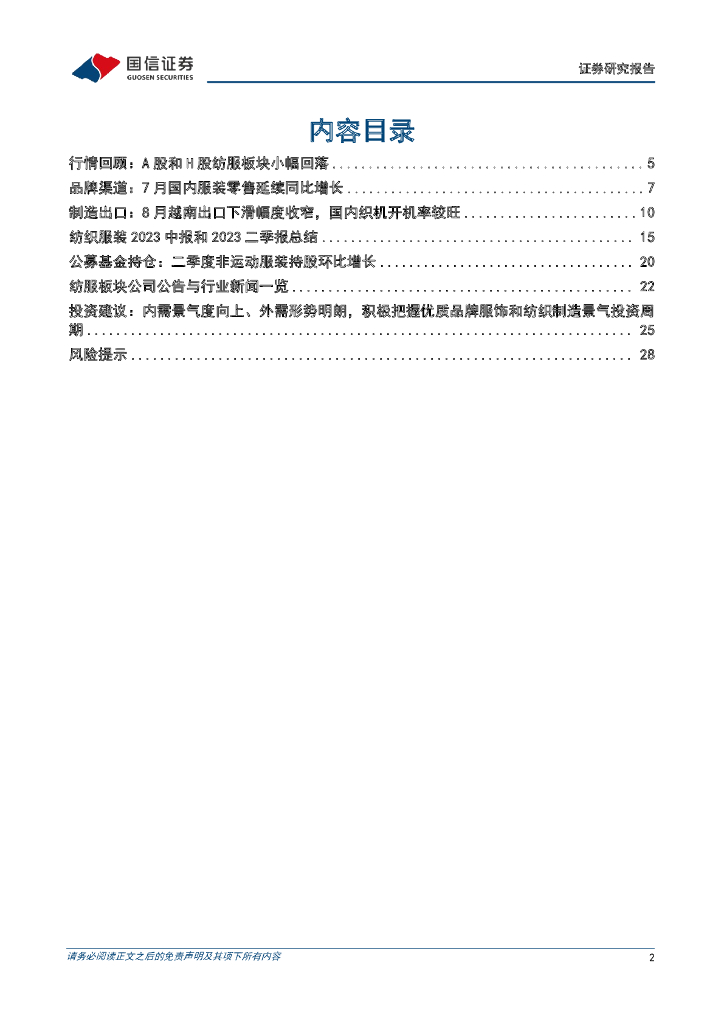 国信证券:纺织服装9月投资策略暨中报总结:板块二季度业绩环比向好,把握下半年景气度提振机遇.pdf