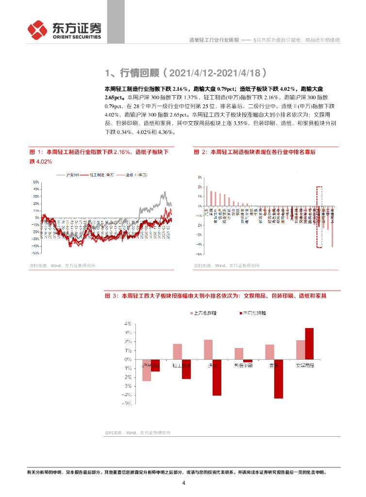 东方证券:造纸产业链数据每周速递:5月木浆外盘报价提涨,成品纸价格维稳.pdf