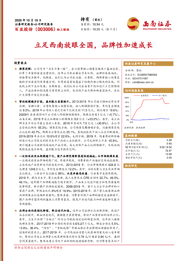 西南证券:百亚股份(003006)-立足西南放眼全国,品牌性加速成长.pdf