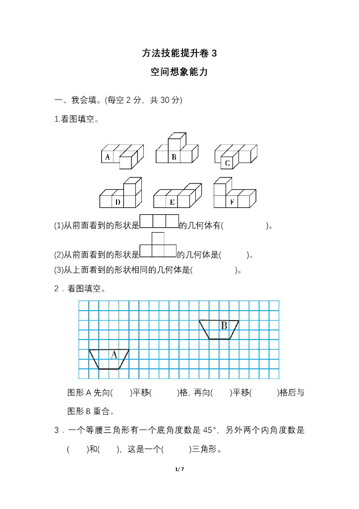 人教四(下)期末冲刺卷3 空间想象能力.pdf
