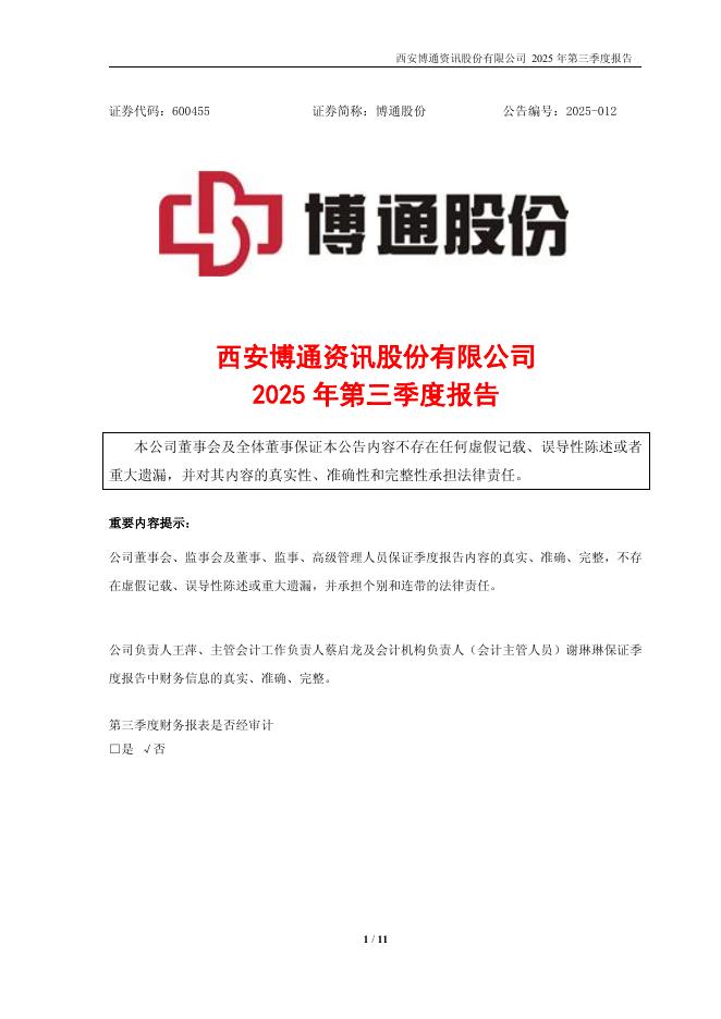 600455-博通股份:博通股份2025年第三季度报告.pdf