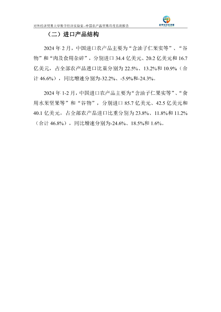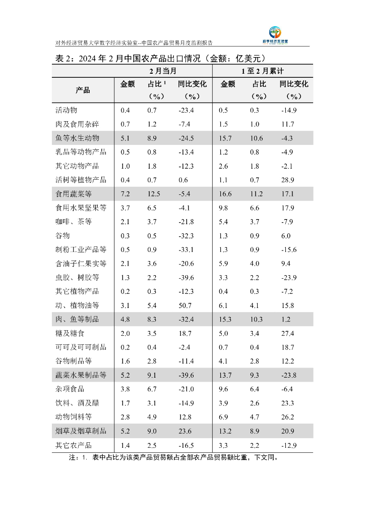 对外经济贸易大学:中国农产品贸易月度监测报告(2024年1-2月).pdf
