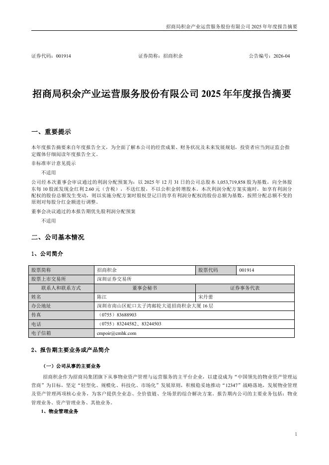 001914-招商积余:2025年年度报告摘要.pdf