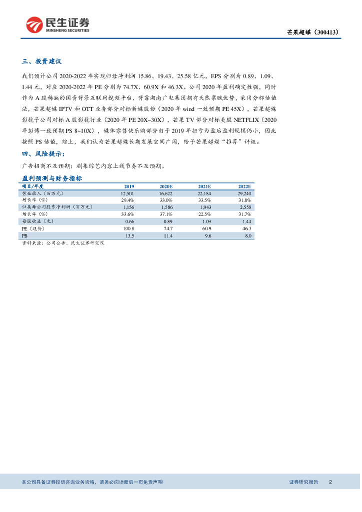 民生证券:芒果超媒2020年半年报点评:会员数量近2800万,长期看好电商“赛道”的第二增长曲线.pdf