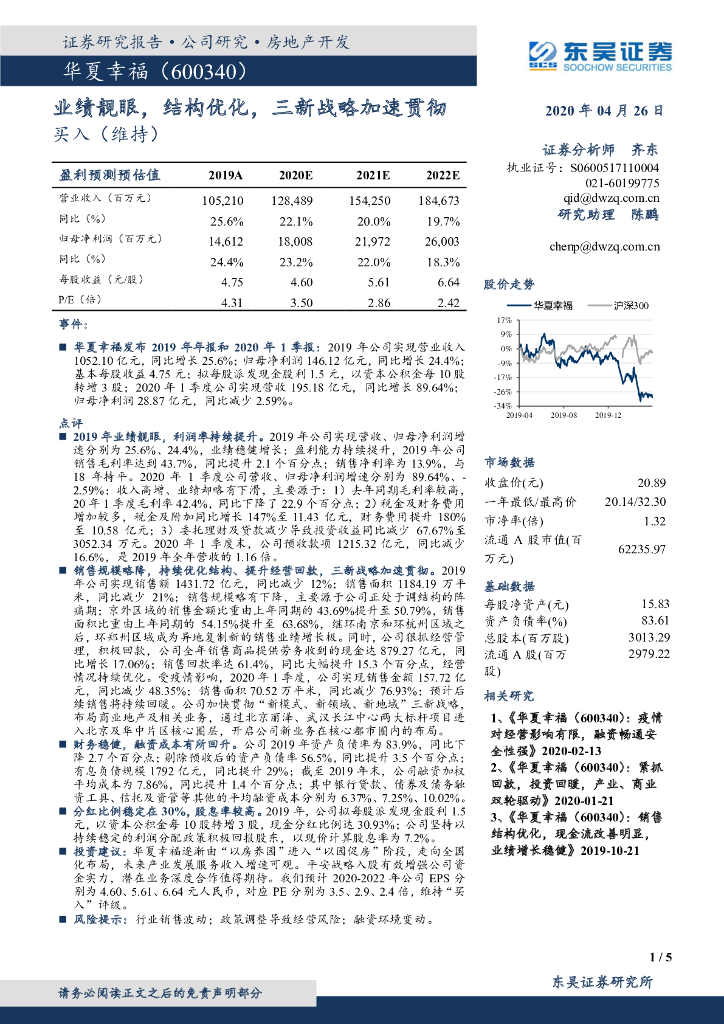 东吴证券:华夏幸福(600340)-业绩靓眼,结构优化,三新战略加速贯彻.pdf