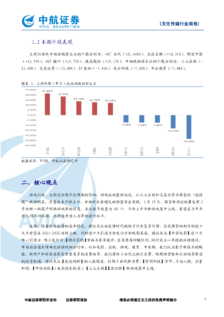 中航证券:文化传媒行业周报:关注一季报表现,布局低估值成长板块.pdf