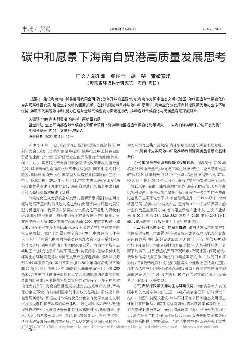 碳中和愿景下海南自贸港高质量发展思考.pdf