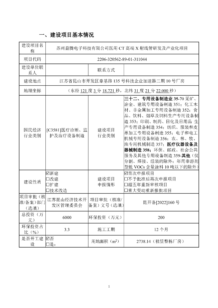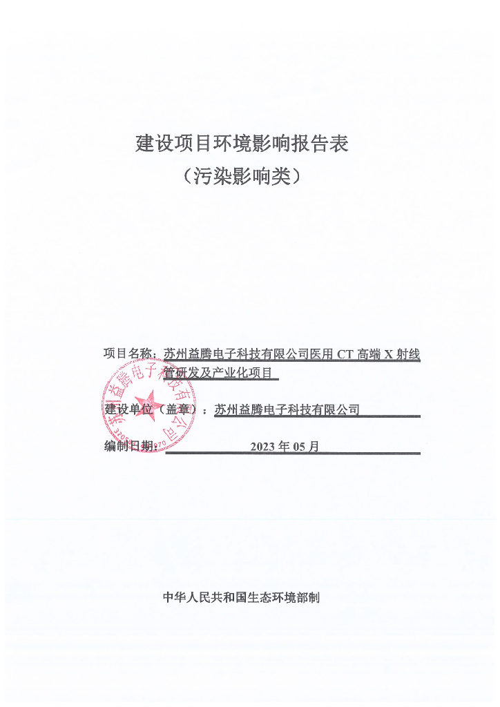 苏州益腾电子科技有限公司医用CT高端X射线管研发及产业化项目建设项目环境影响报告表(污染影响类).pdf